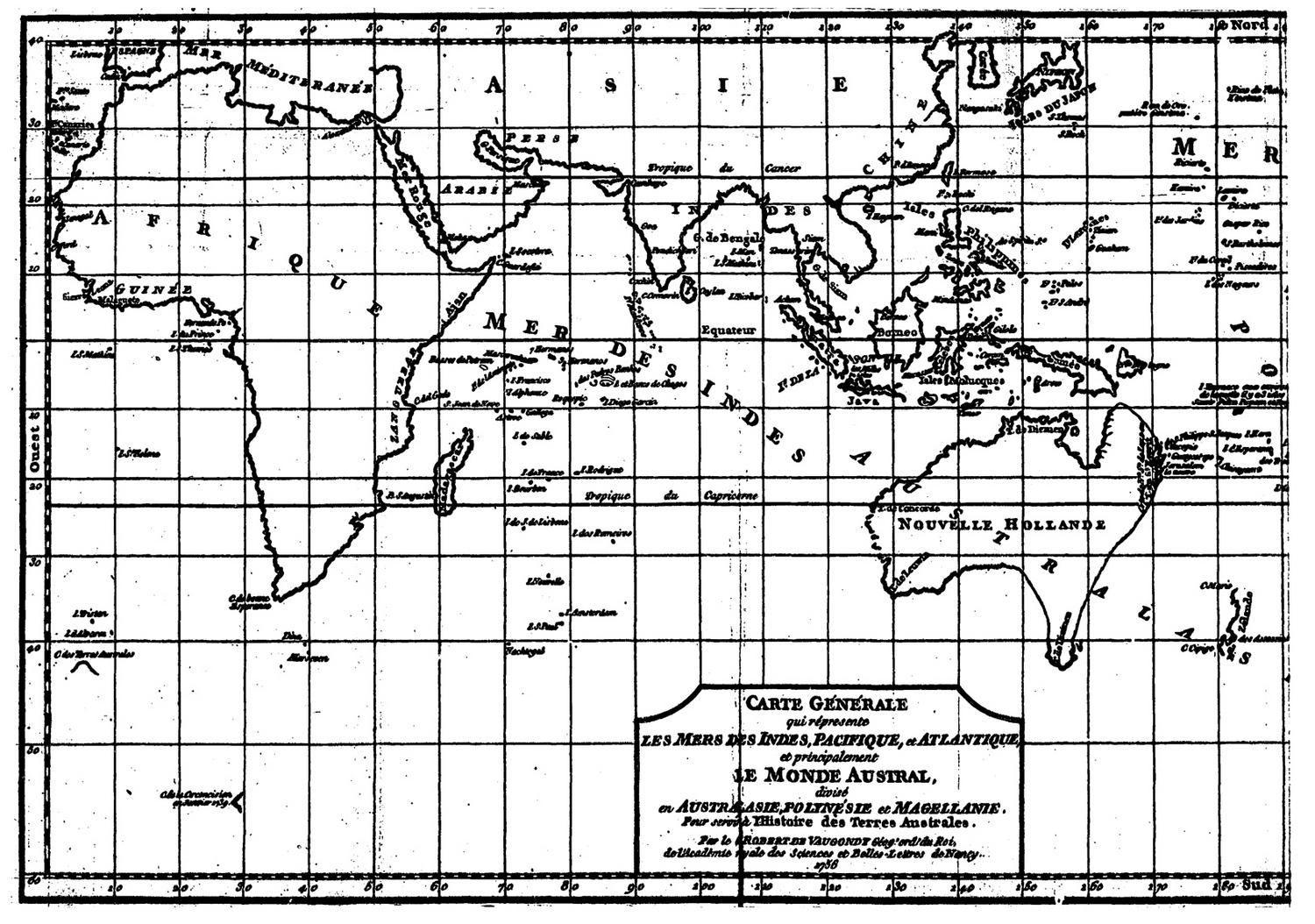 De Brosses, Charles 1756 [accessed: 2026/2/3]. "Carte générale qui représente les Mers des Indes, Pacifique et Atlantique et principalement Le monde Austral divis� en Australie, Polyn�sie et Magellanie" (Object Id: 1729). In