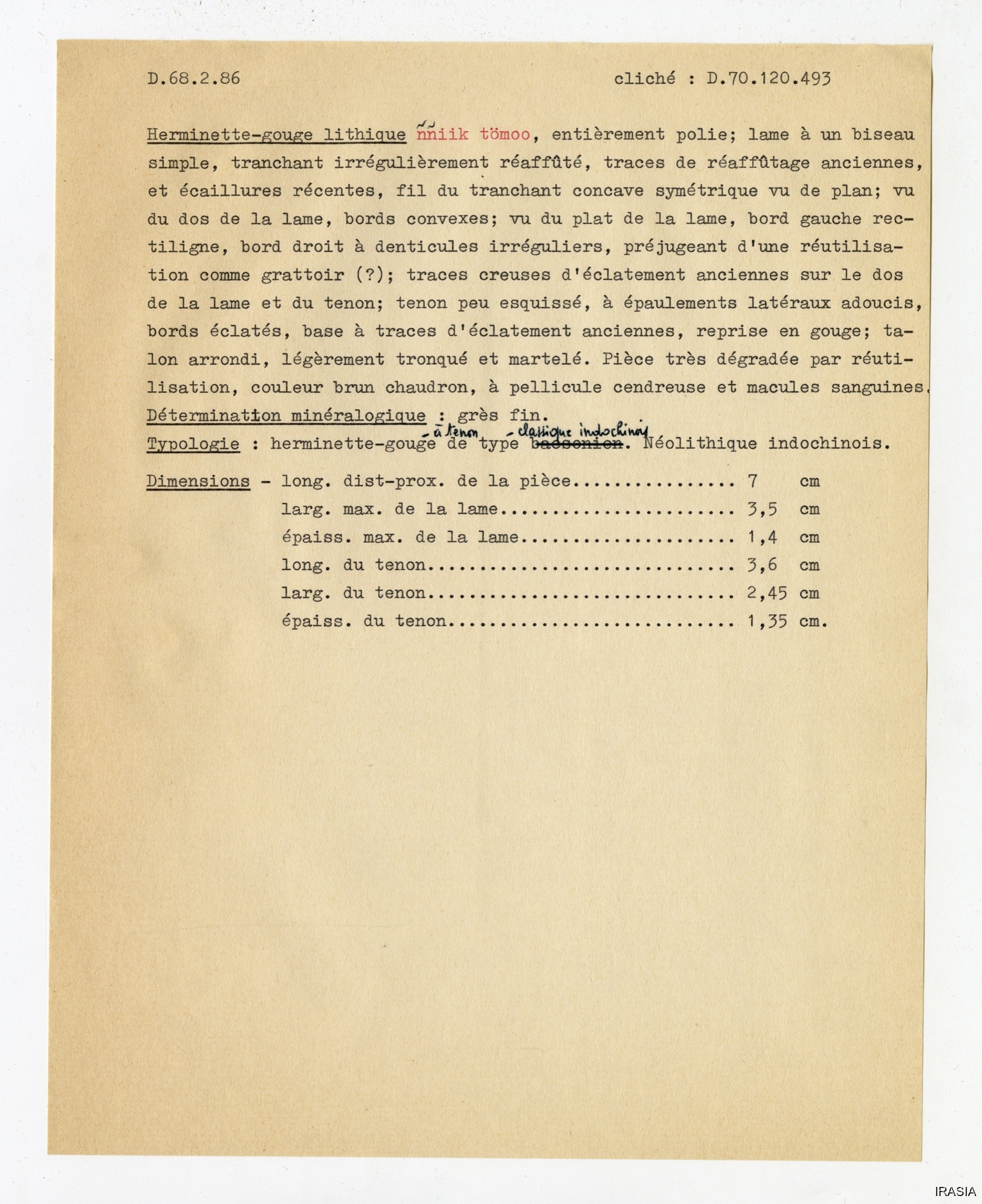 Quote this document Léger, Daniel [accessed: 2026/2/3]. "Outils" (Object Id: 173554). In Outils. ODSAS: https://www.odsas.net/object/173554.