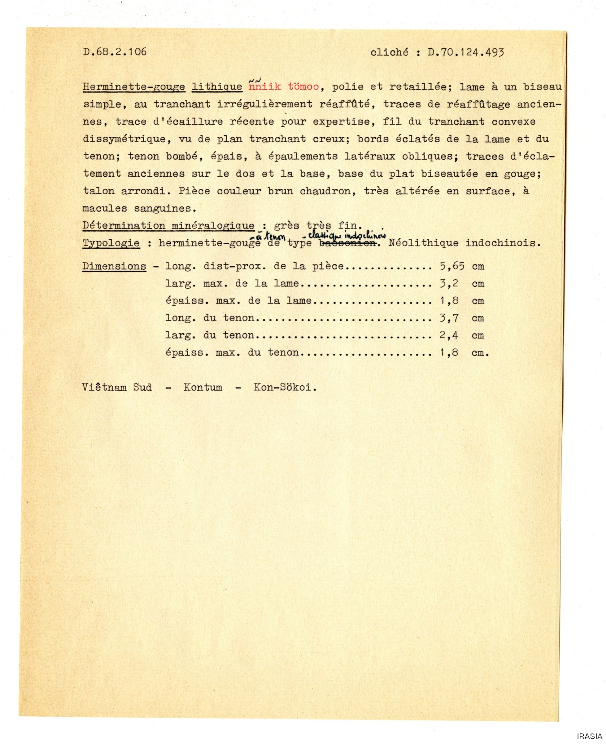Quote this document Léger, Daniel [accessed: 2026/2/3]. "Outils" (Object Id: 173606). In Outils. ODSAS: https://www.odsas.net/object/173606.