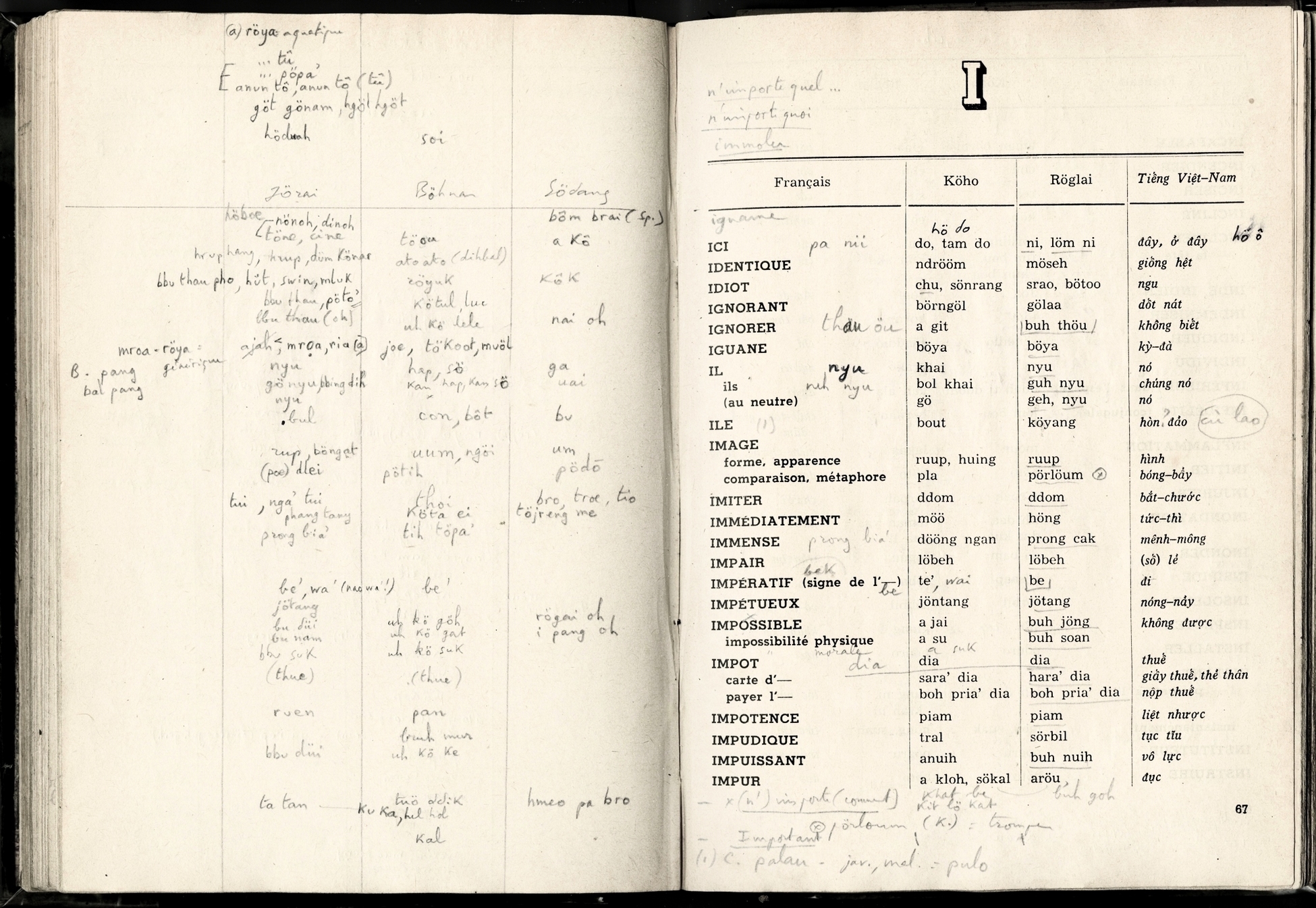 Lexique Polyglotte Viêtnamien, Köho, Röglai, Français