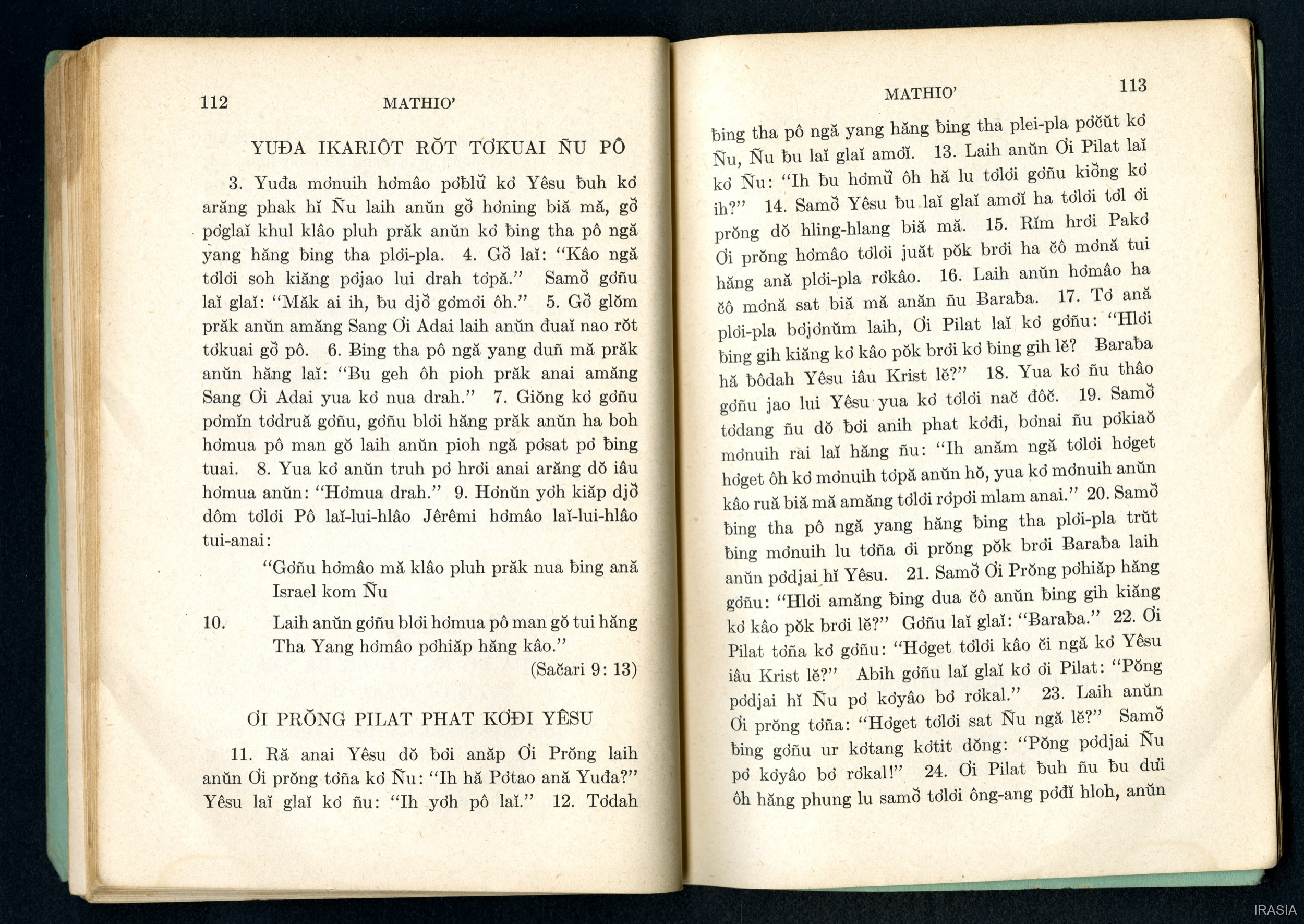 Quote this document Dournes, Jacques 1946-1955 [accessed: 2026/2/2]. "Evangiles : Tơlơi phrâo hiăm MATHIƠ" (Object Id: 174668). In Evangiles : Tơlơi phrâo hiăm MATHIƠ. ODSAS: https://www.odsas.net/object/174668.