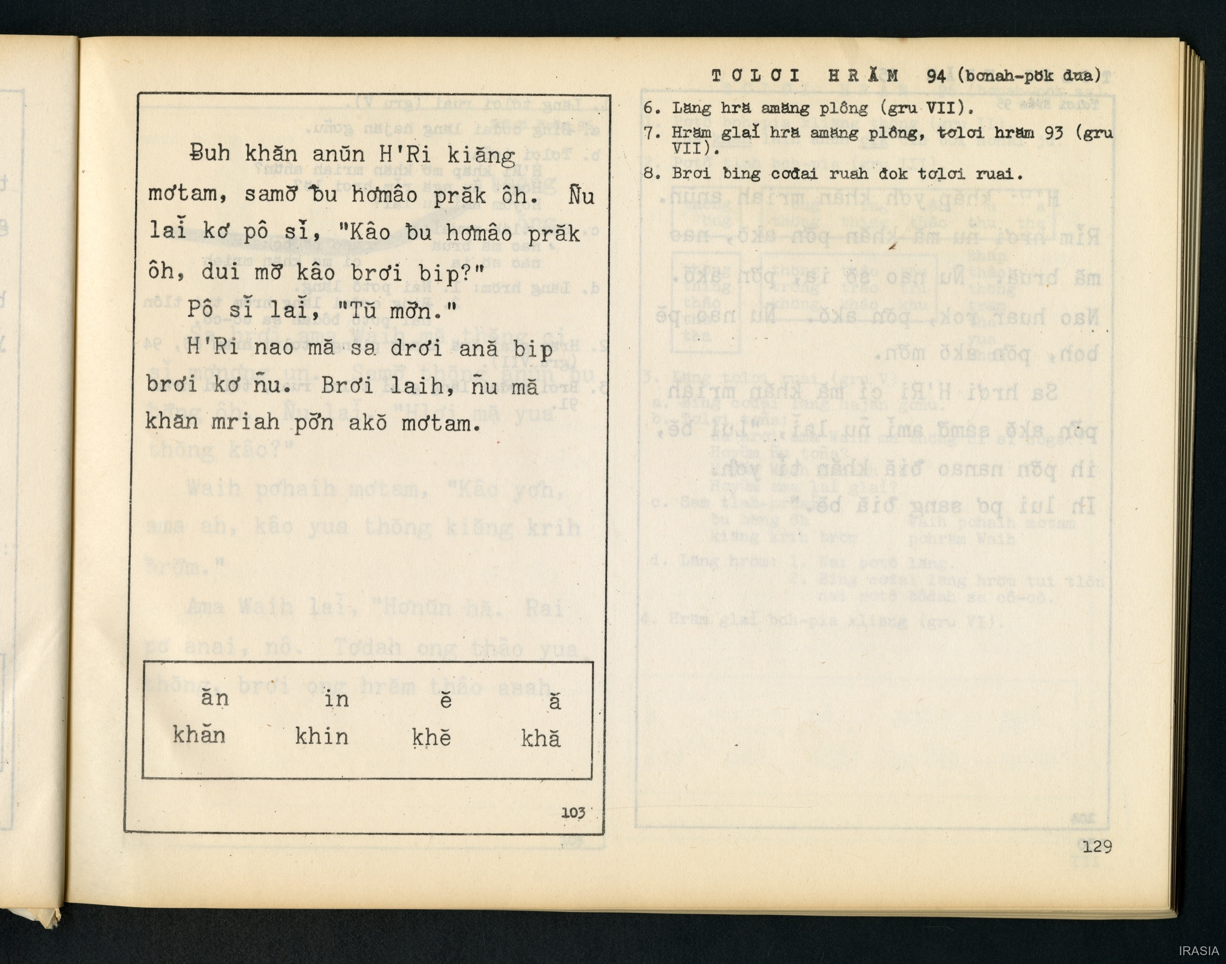 Quote this document Dournes, Jacques [accessed: 2026/2/2]. "Manuel : Kâo pơphùn hrăm hră" (Object Id: 174803). In Manuel : Kâo pơphùn hrăm hră. ODSAS: https://www.odsas.net/object/174803.