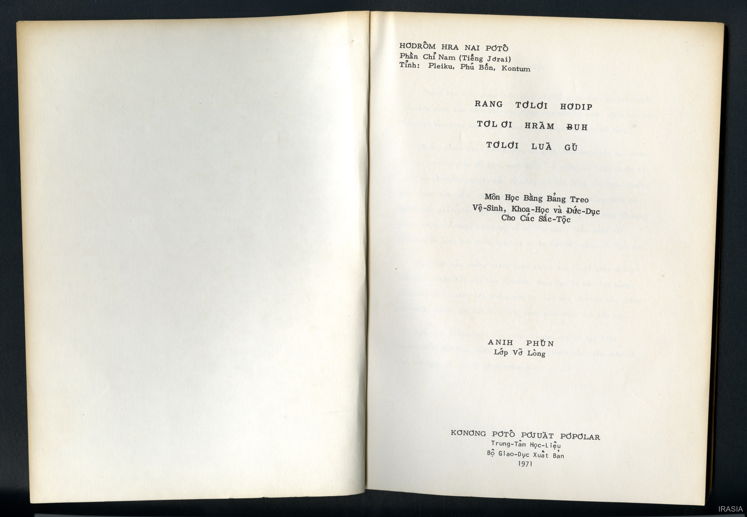 Dournes, Jacques [accessed: 2026/1/20]. "Manuel : Rang tơlơi hơdip tơlơi hrăm buh tơ lơi luă gu" (Object Id: 174887). In