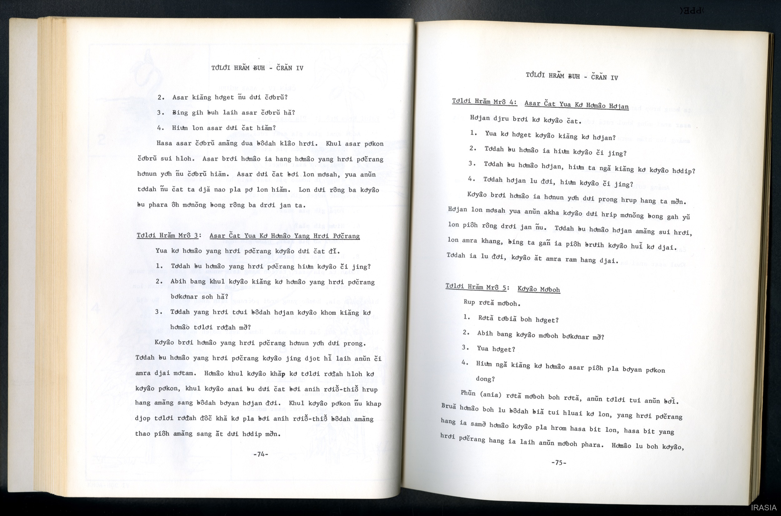 Quote this document Dournes, Jacques [accessed: 2026/1/27]. "Manuel : Rang tơlơi hơdip tơlơi hrăm buh tơ lơi luă gu" (Object Id: 174930). In Manuel : Rang tơlơi hơdip tơlơi hrăm buh tơ lơi luă gu. ODSAS: https://www.odsas.net/object/174930.