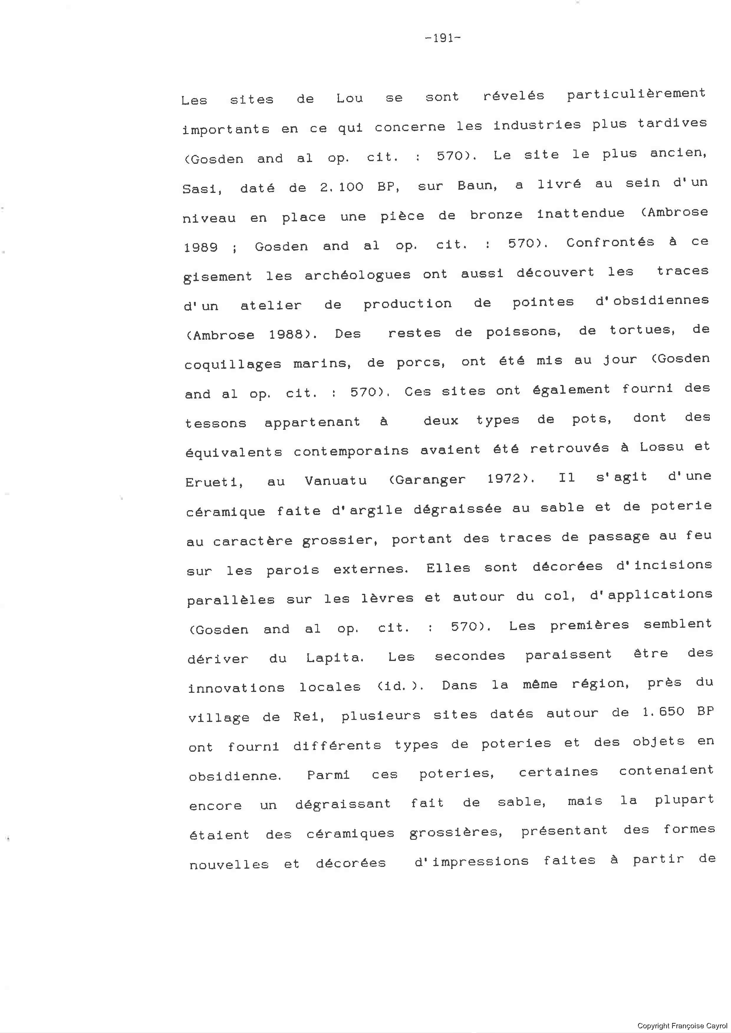 Quote this document Cayrol, Françoise 1992 [accessed: 2026/2/2]. "Françoise Cayrol. La céramique en Mélanésie du Sud, Fonction ou Statut. Volume 1" (Object Id: 183998). In Françoise Cayrol. La céramique en Mélanésie du Sud, Fonction ou Statut. Volume 1. ODSAS: https://www.odsas.net/object/183998.