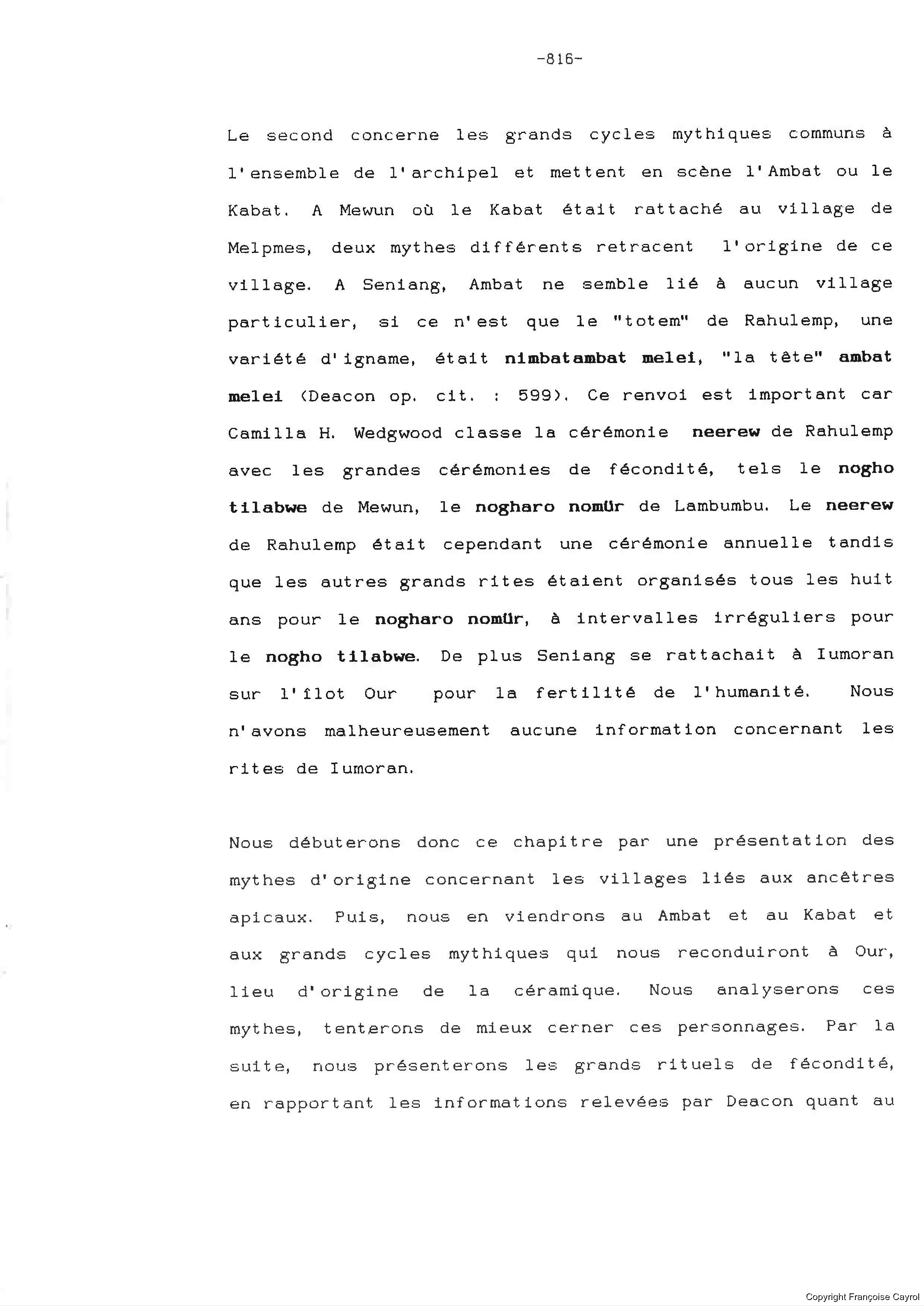 Title/DescriptionFrançoise Cayrol. La céramique en Mélanésie du Sud, Fonction ou Statut. Volume 3