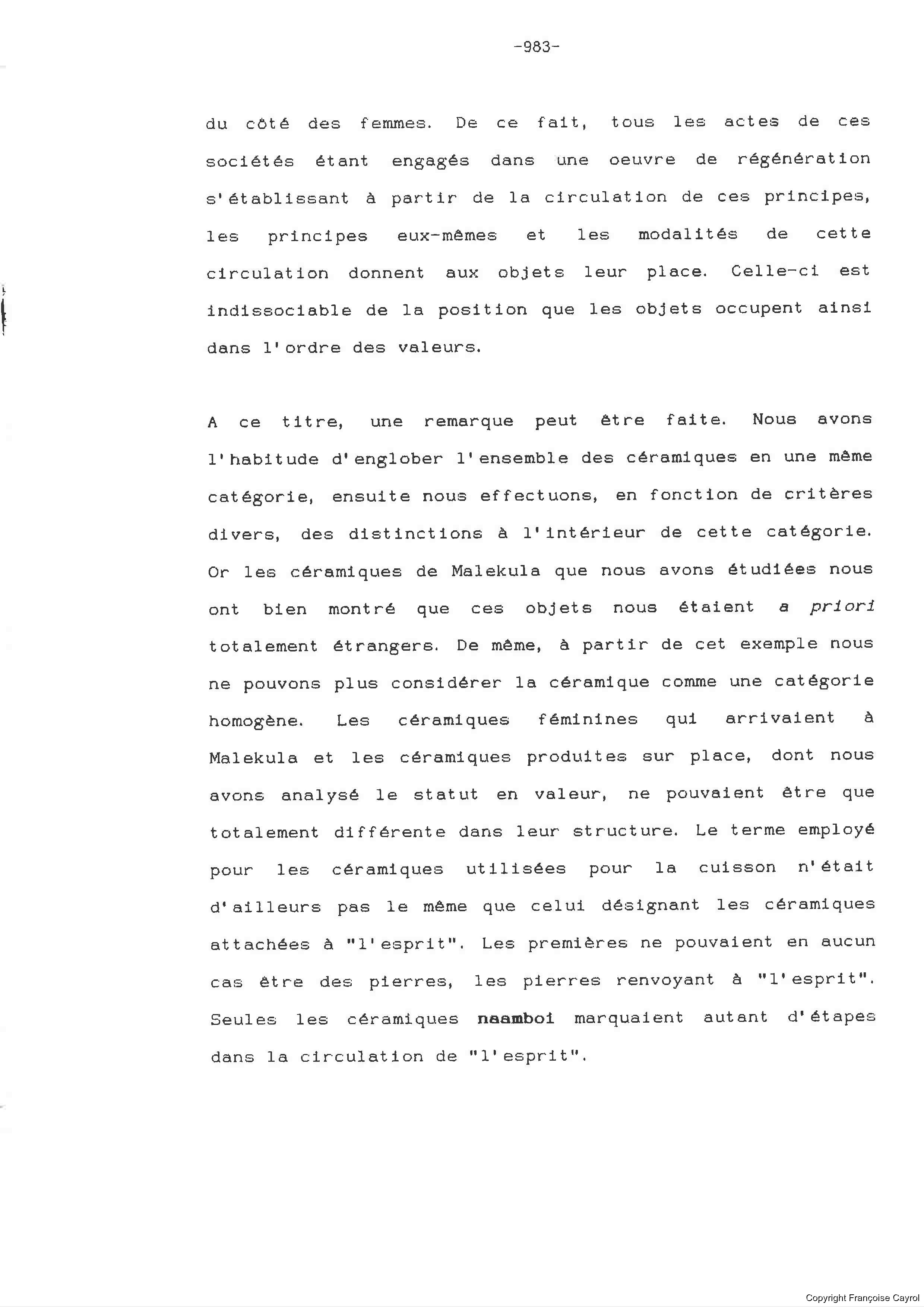 Title/DescriptionFrançoise Cayrol. La céramique en Mélanésie du Sud, Fonction ou Statut. Volume 3