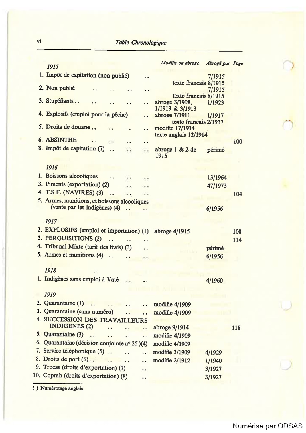 vi Table Chronologique