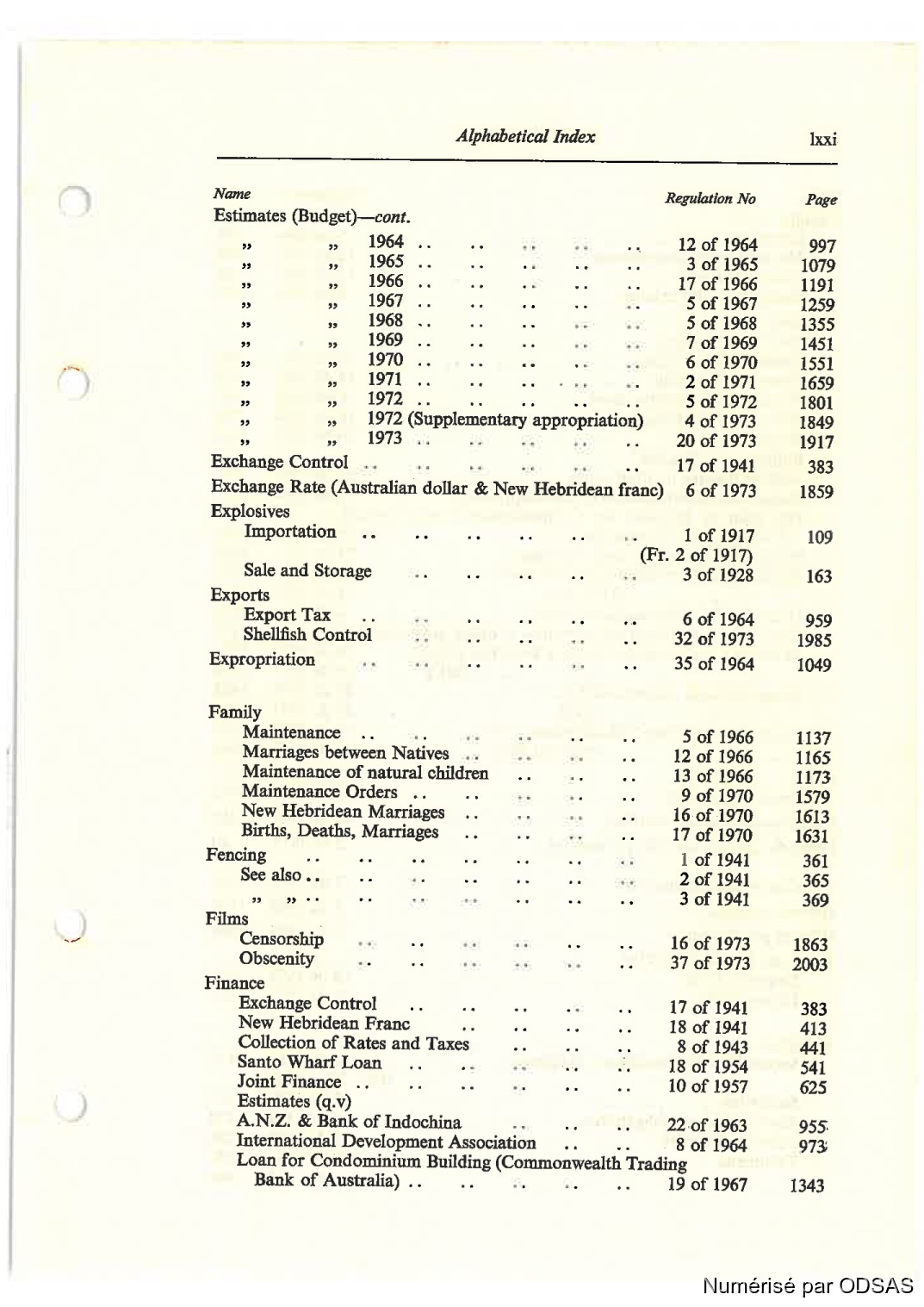 Quote this document Commissaires, Résidents 1973 [accessed: 2026/2/3]. "Règlementation Conjointe des Nouvelles-Hébrides, Tome 1" (Object Id: 197080). In Règlementation Conjointe des Nouvelles-Hébrides, Tome 1. ODSAS: https://www.odsas.net/object/197080.