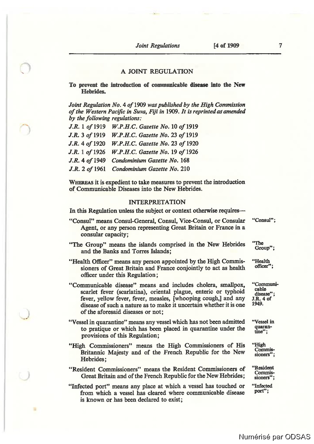 Joint Rzgulan'on No. 4 of 1909 mupublished by the High Comim'ssion