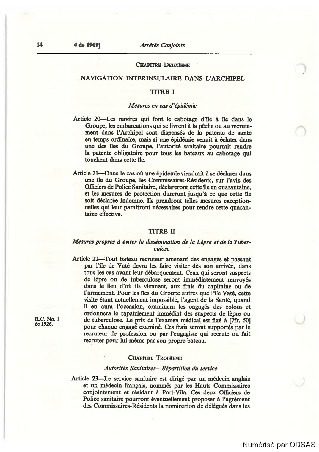 ARTICLE 23—12 service sanitaire est dirigé par un médecin anglais