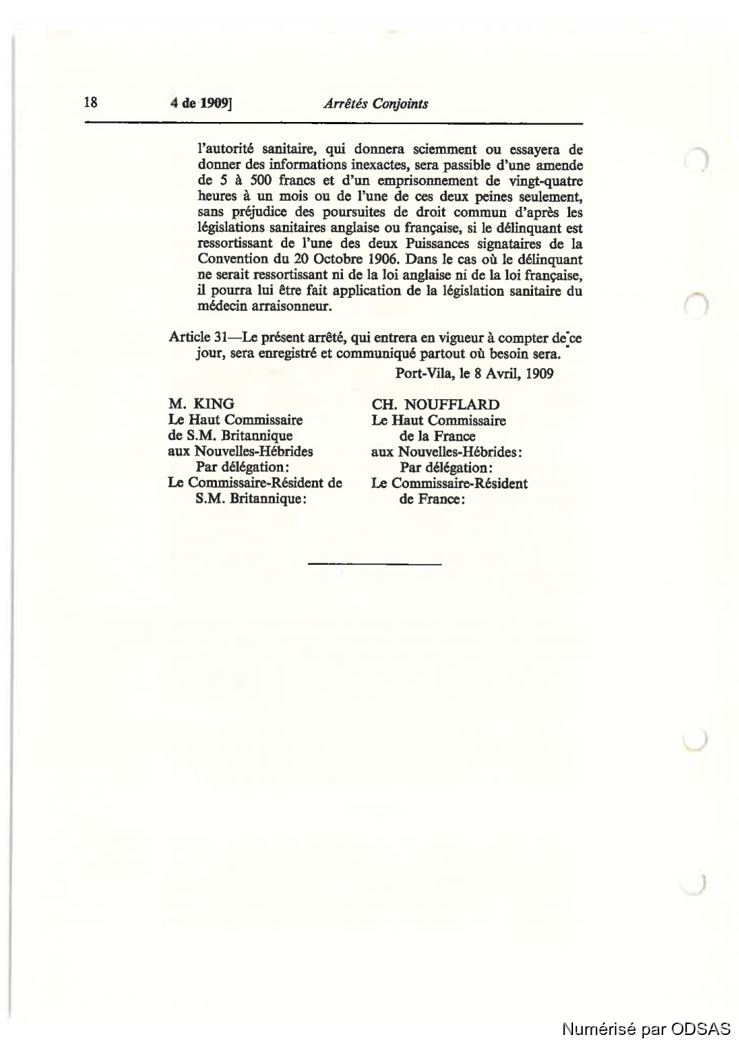 4 de 1909] Arrêtés Conjoints