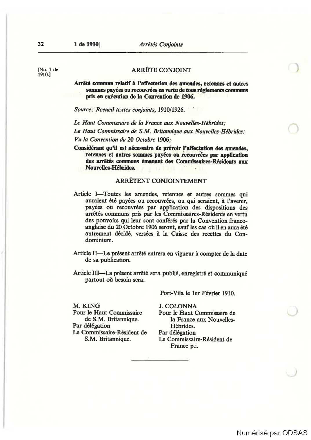 Vu Ia Convznn'nn du 20 Octobre 1906;