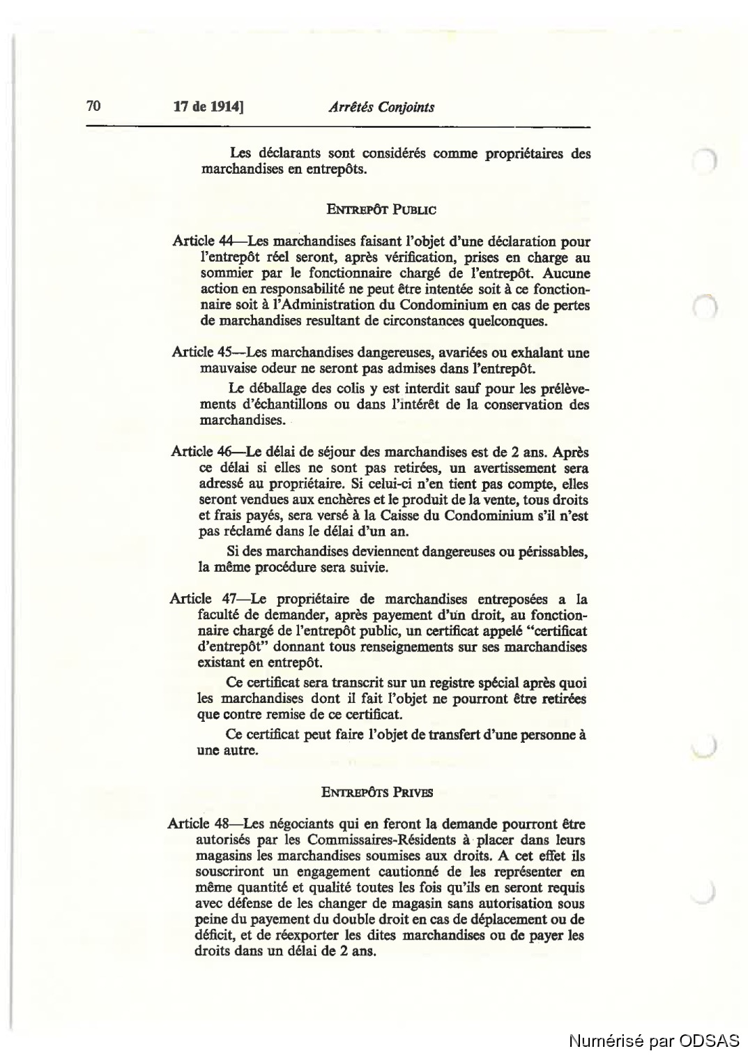 ARTICLE 46—].e délai de séjour des marchandises est de 2 ans. Après