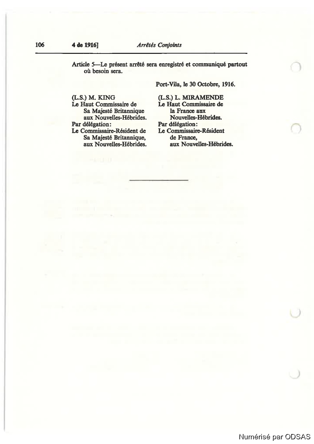 (L.S.) M. KING (L.S.) L. MIRAMENDE LE Haut Commissaire de LE Haut Commissaire de
