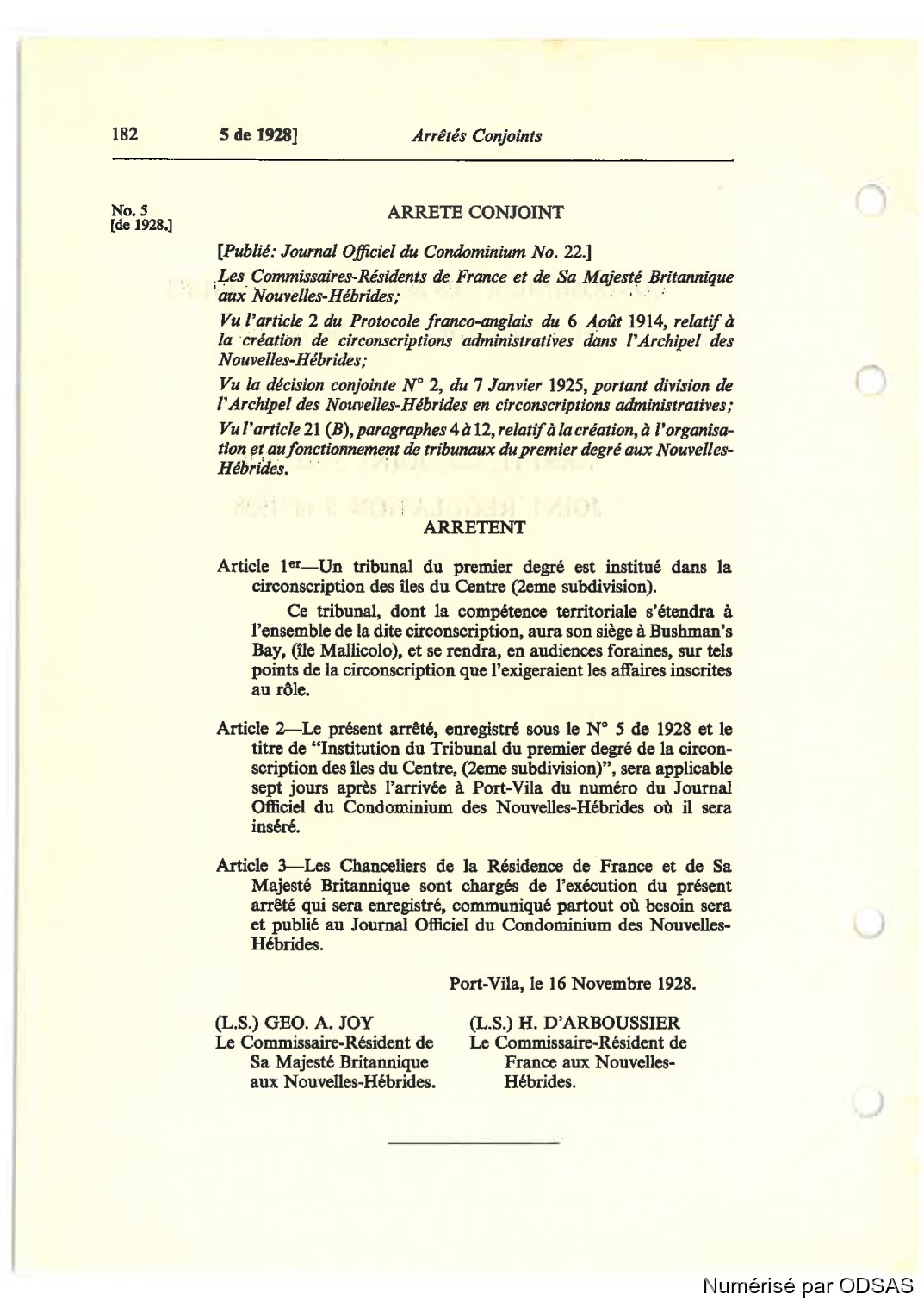 Port-Vila, le 16 Novembre 1928.