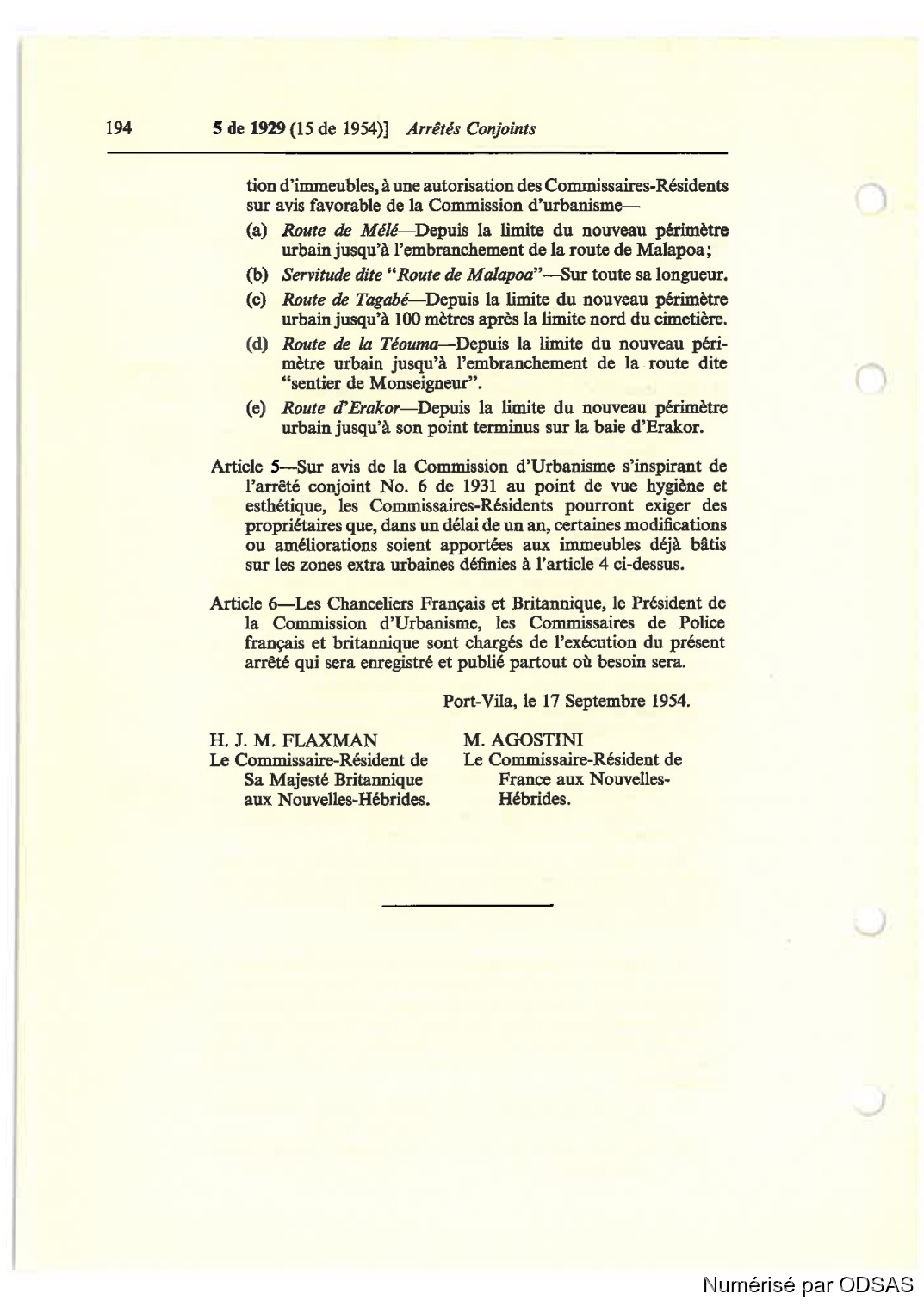 Port-Vila, le 17 Septembre 1954.