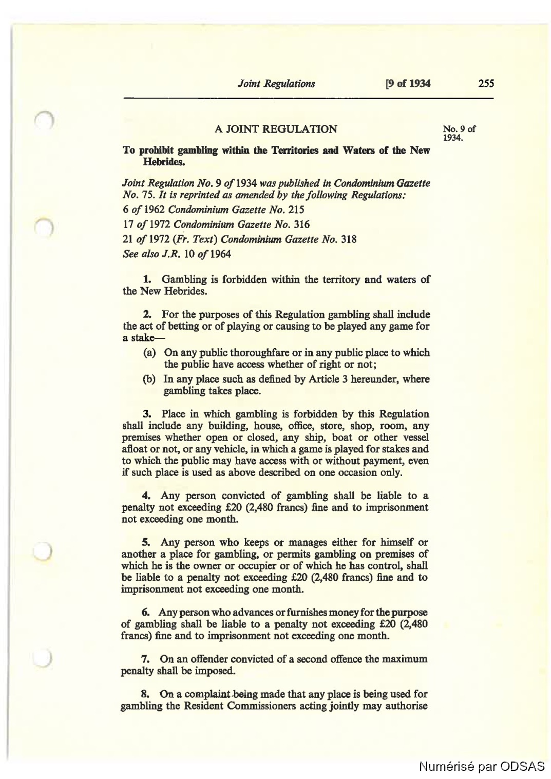 Juin! Regulations [9 of 1934