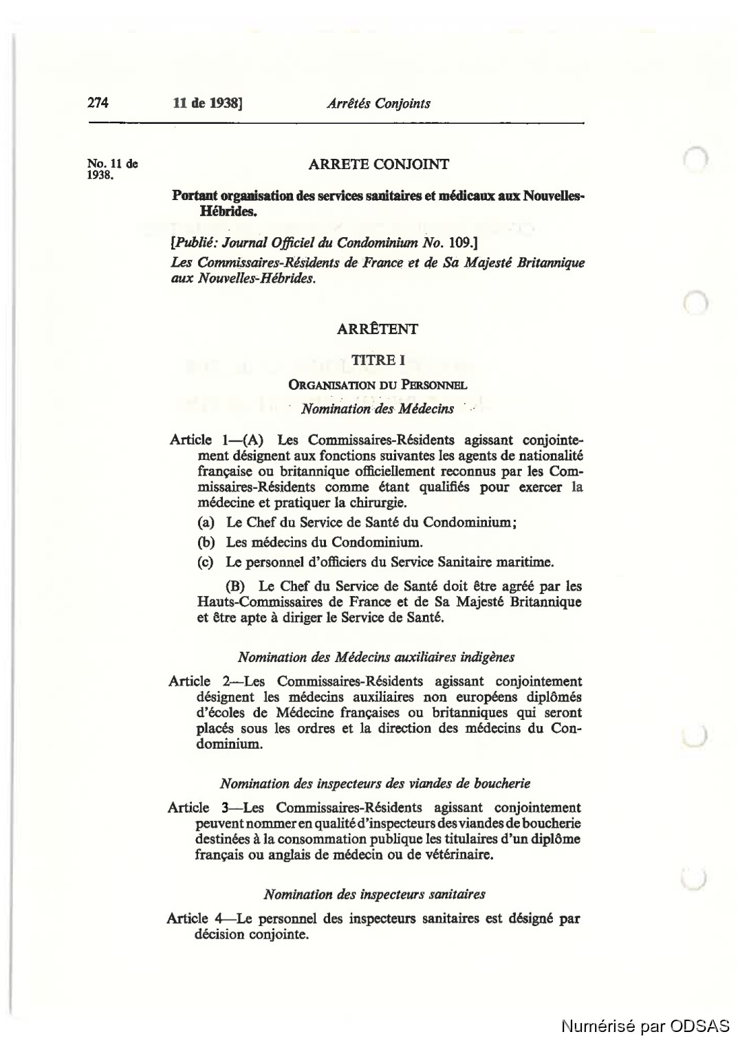 Article l—(A) Les Commissaires-Résidents agissant conjointe—