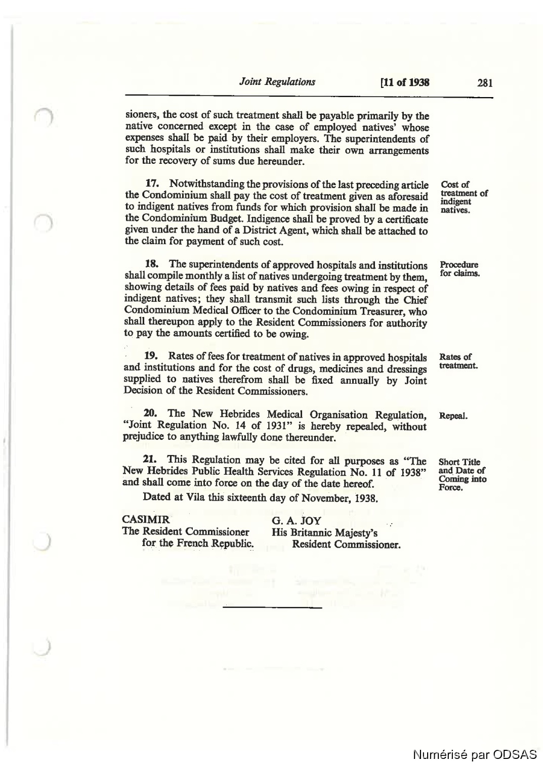 Dnted nt Vila this sixteenth day cf November, 1938.
