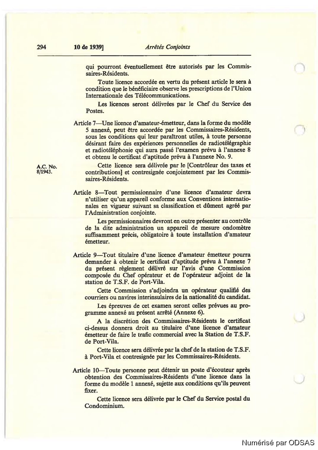 Article 9—Tout titulaire d’une licence d’amatuxr émetteur pourra