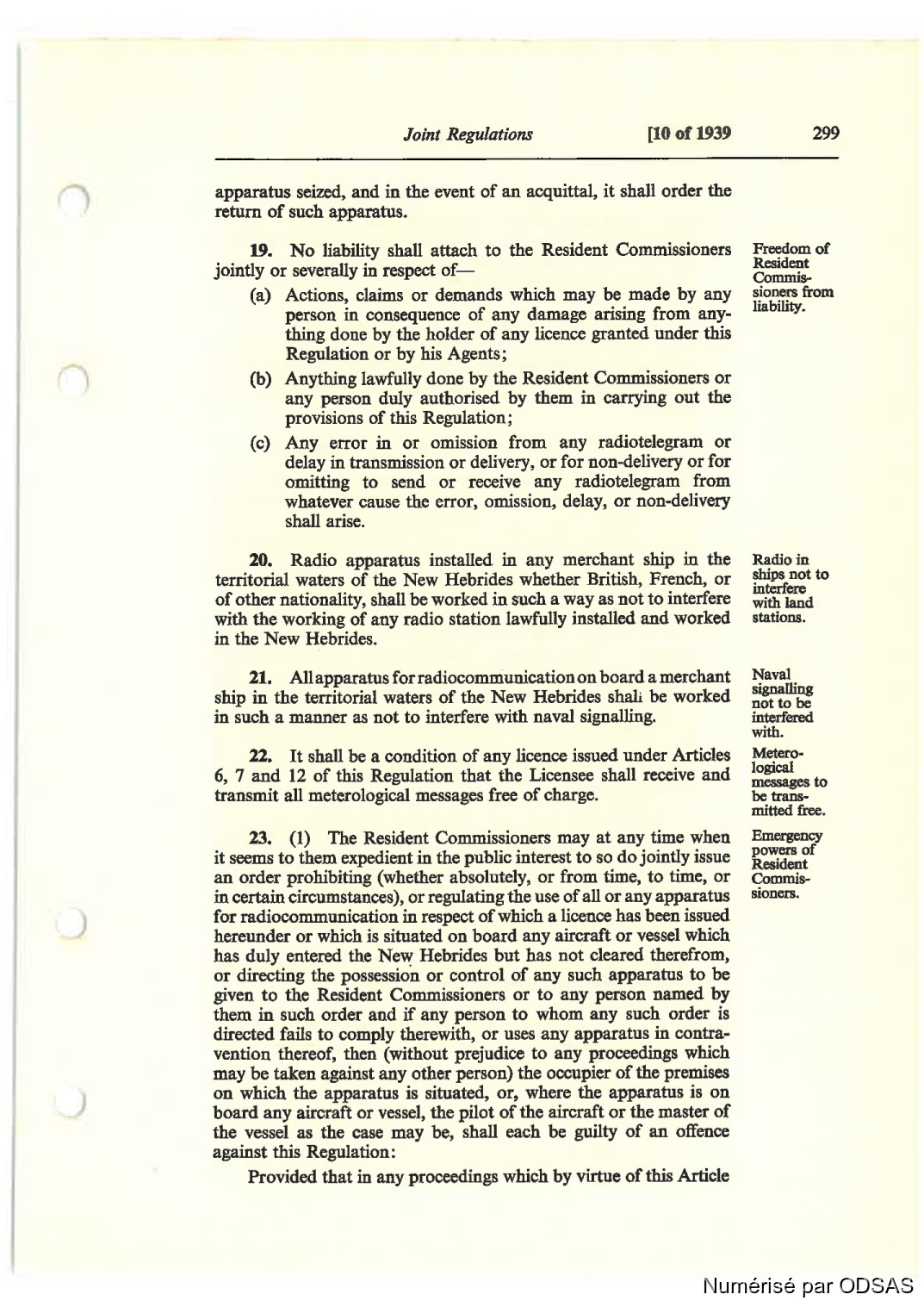 Joint Regulan'orn' [10 of 1939