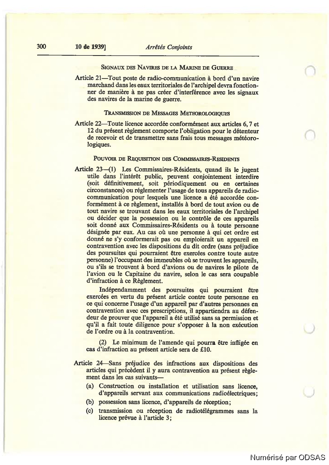 Article 23—(1) Les Comissaires—Résidents, quand ils le jugent
