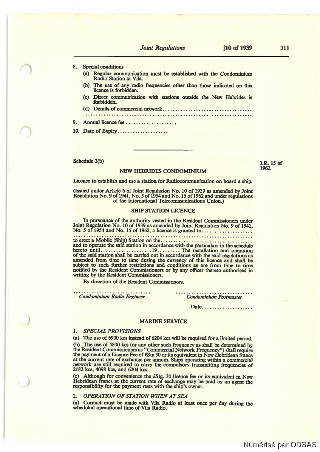 (IN under Article 5 ofJoim Reaulmim No. 10 of 1939 u amenfled by Joint