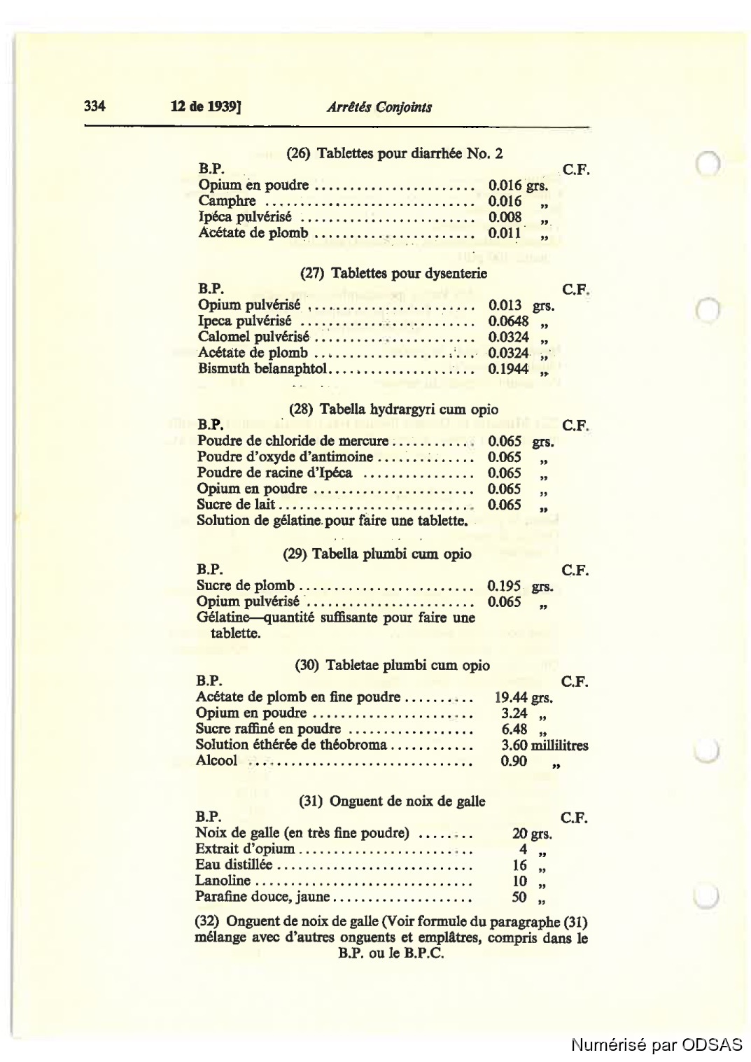 Opium pulvérisé . . . . . . . . . . . . . . . . . . . . . . .. 0.013 grs.