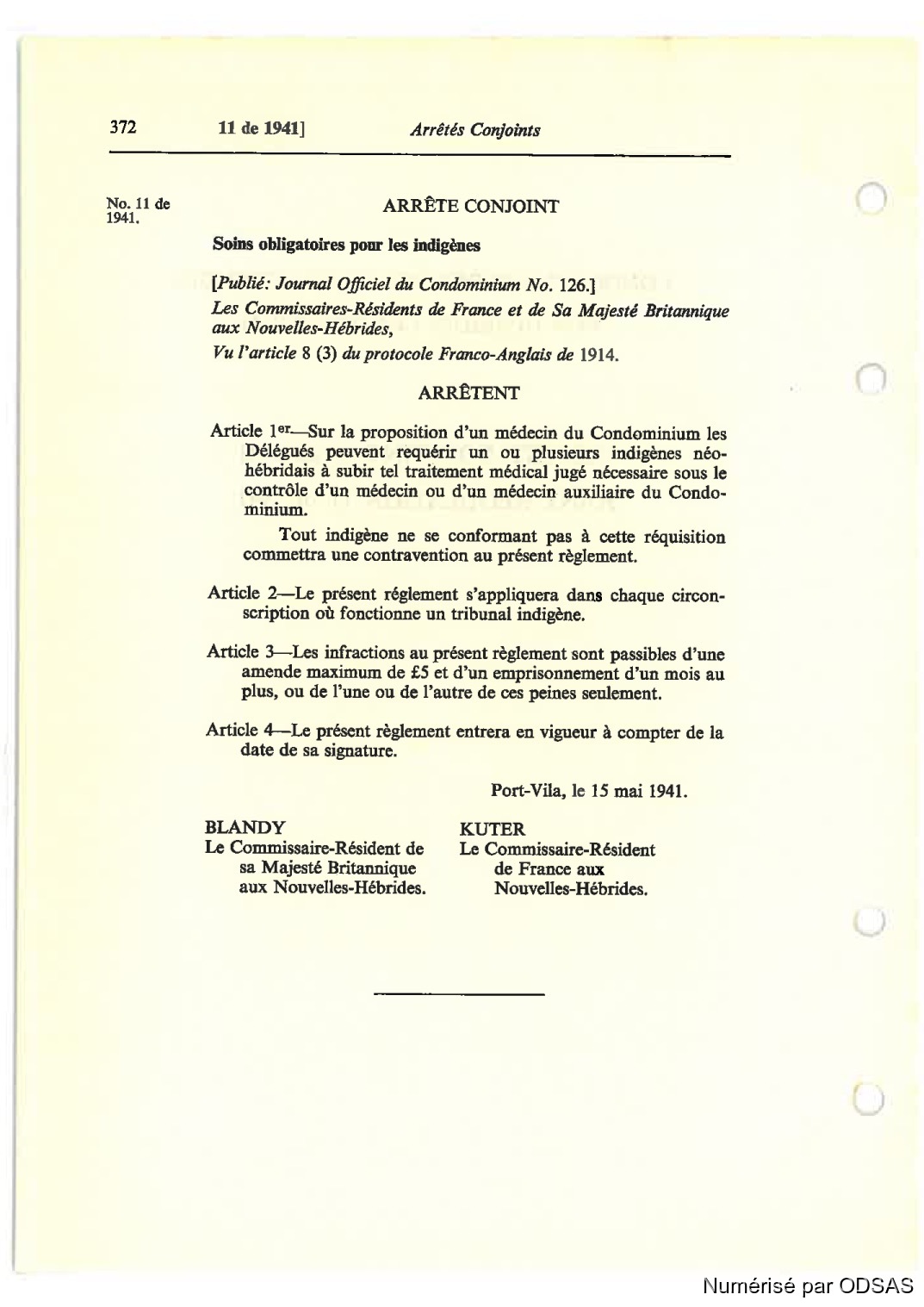 Port-Vila, le 15 mai 1941.