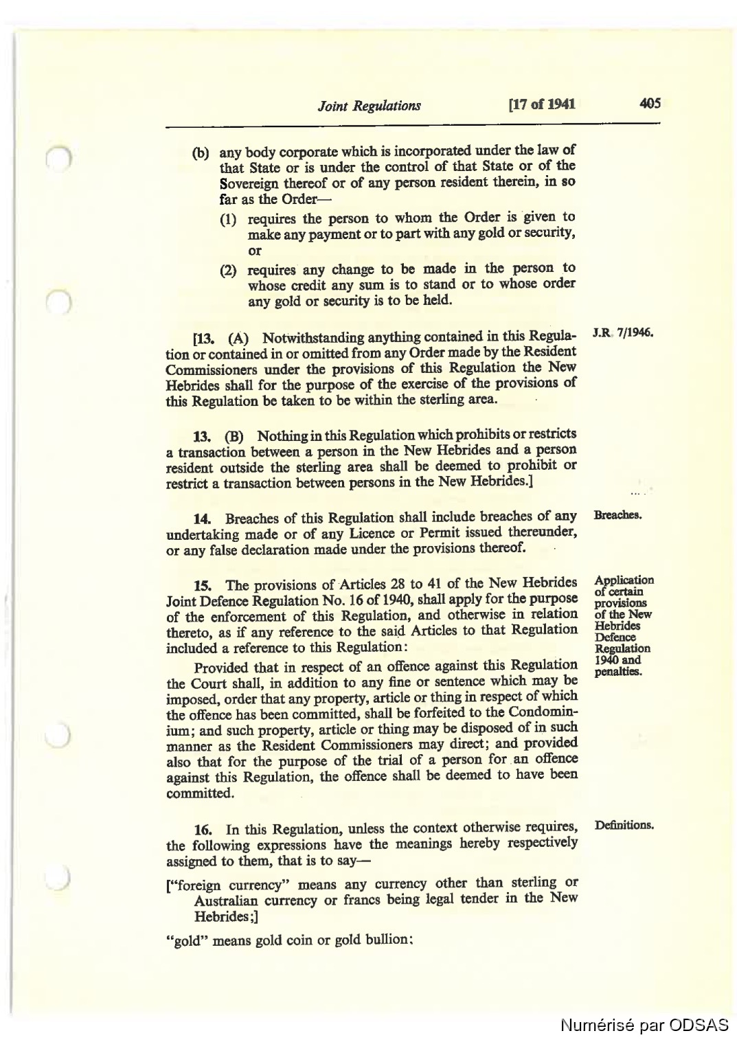 Joint Defanœ Regulation No. 16 oi‘ 1940, shsll spply for tbe purpose