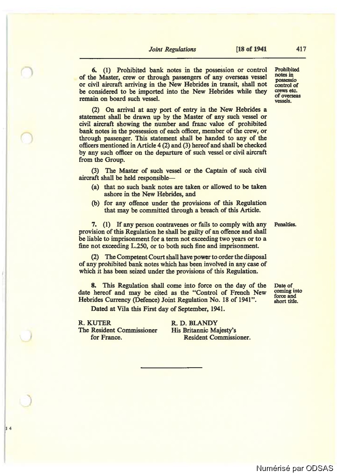 Hebrides Currcncy (Defce) Joint Regulatian No. 18 cf 1941".