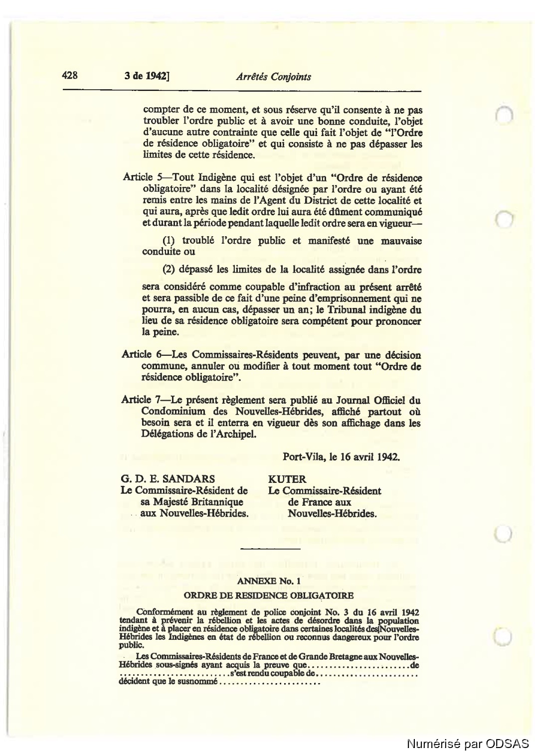 Arücle 5—Tout Indigène qui est l’objet d’un “Ordre de résidence