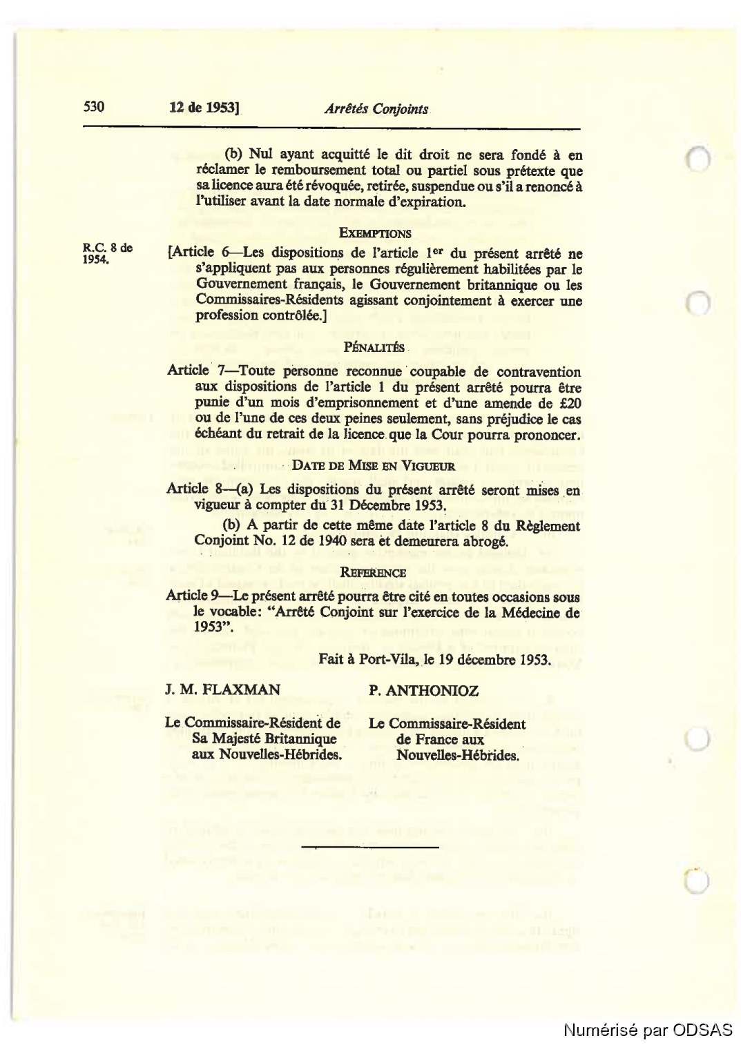 Fait à Port-Vila, le 19 décembre 1953.