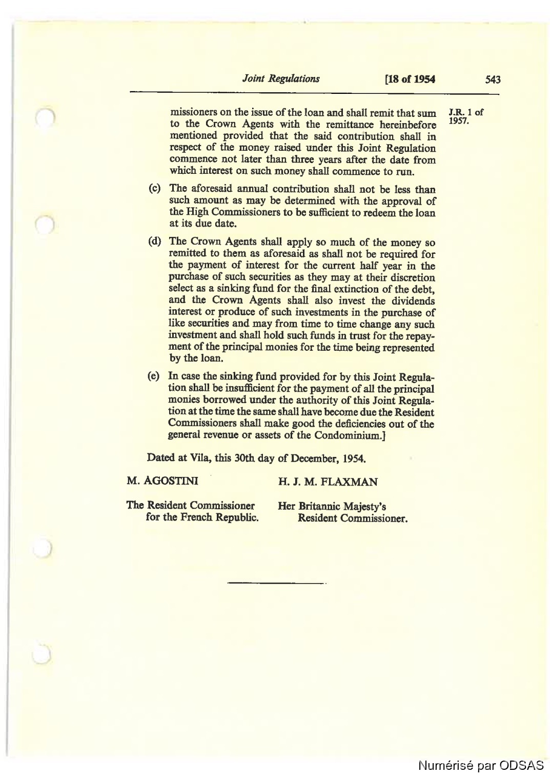 Dated at Vila, th'u 30th day of Deoember, 1954.