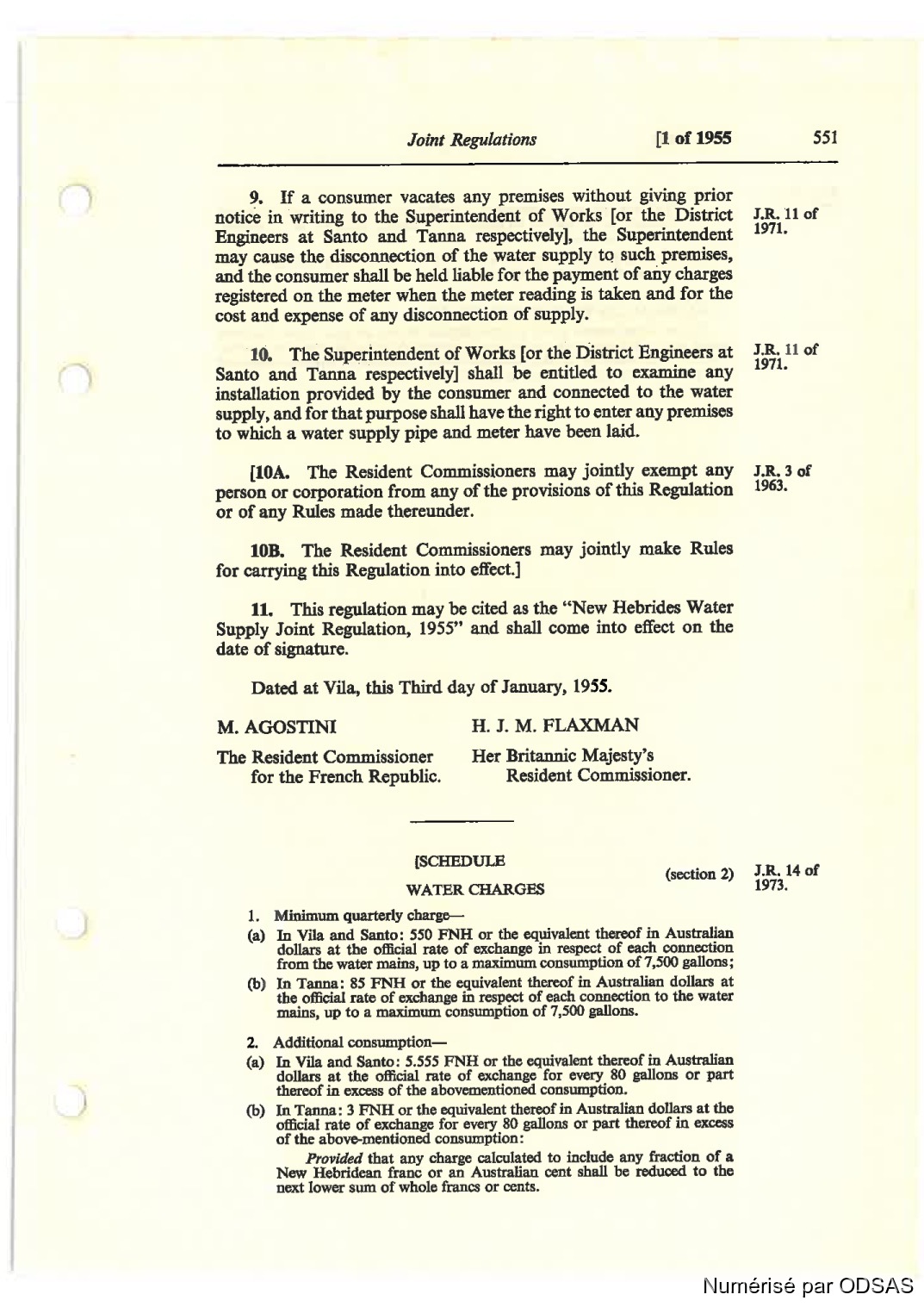 11. This regulation may be cited as the “New Hebridcs Water