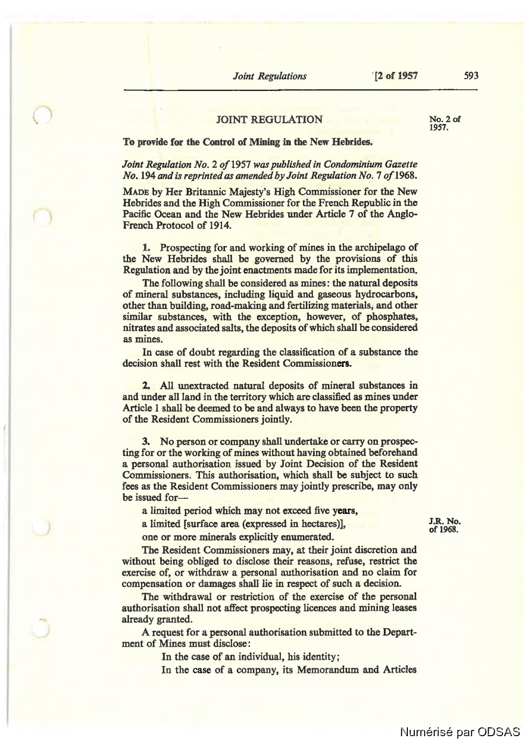 Quote this document Commissaires, Résidents 1973 [accessed: 2026/2/3]. "Règlementation Conjointe des Nouvelles-Hébrides, Tome 1" (Object Id: 197690). In Règlementation Conjointe des Nouvelles-Hébrides, Tome 1. ODSAS: https://www.odsas.net/object/197690.