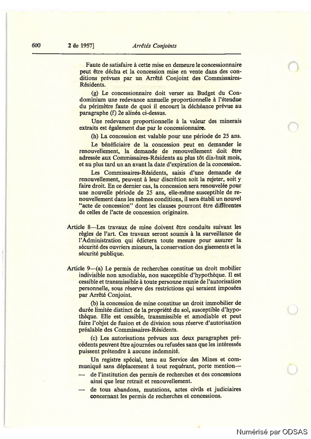 Article 9—(a) Le permis de recherches constitue un droit mobilier
