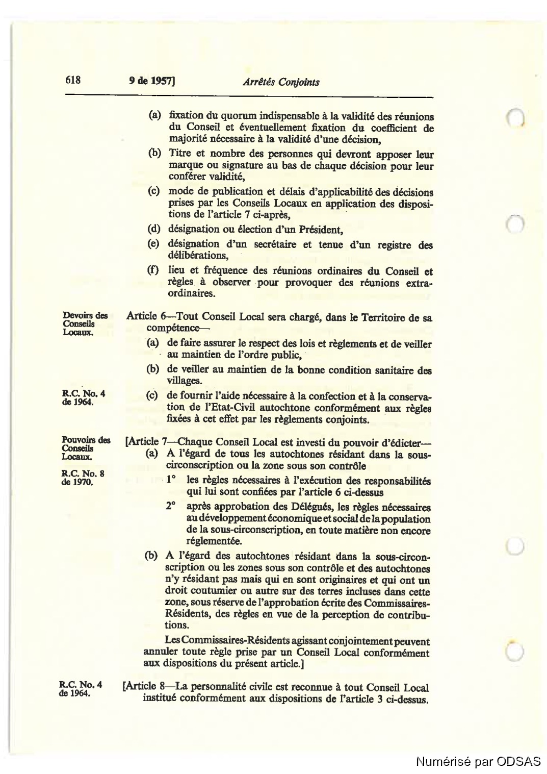 Article 6—Tout Conseil Local sera chargé, dans le Territoire de ss