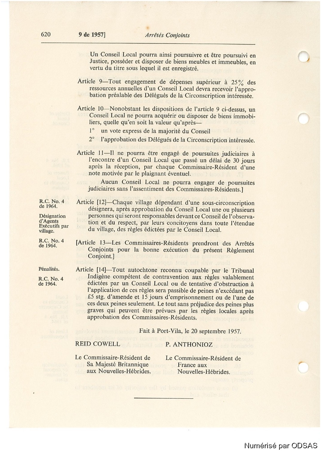 Fait à Port-Vila, le 20 septembre 1957.