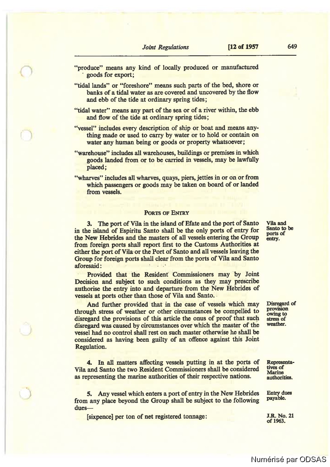 5. Any vassal which enters a port o!” entry in the New Hebrides