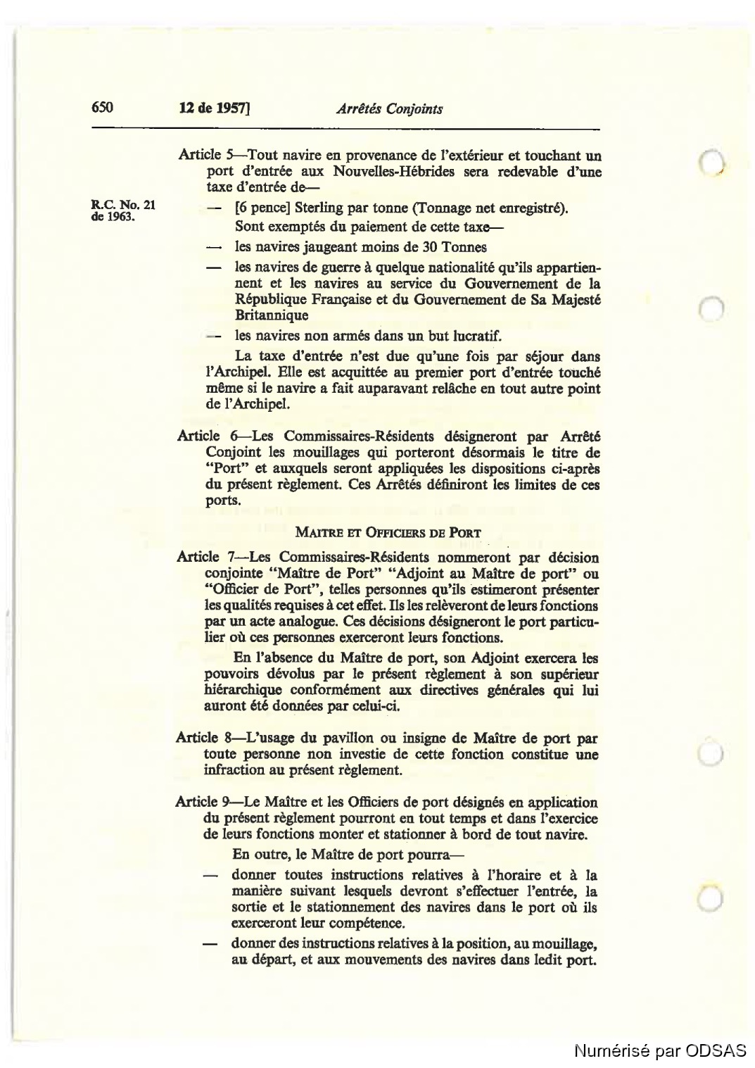 ARTICLE S—L‘usage du pavillon ou insigne de Maître de port par