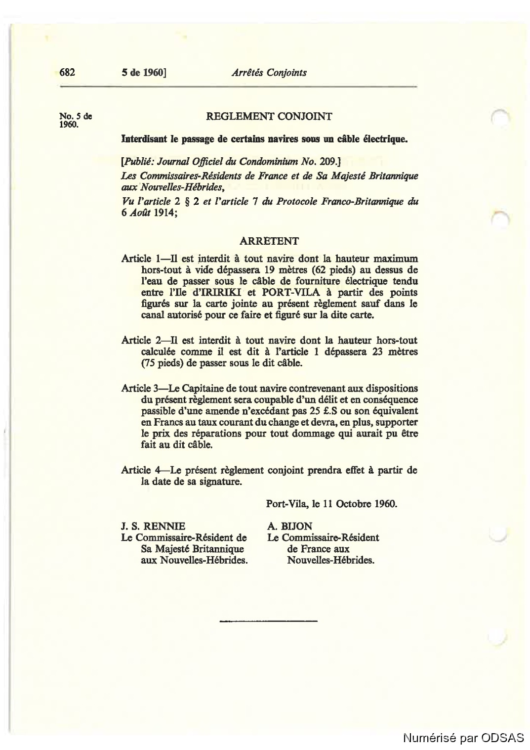 Règlementation Conjointe des Nouvelles-Hébrides...