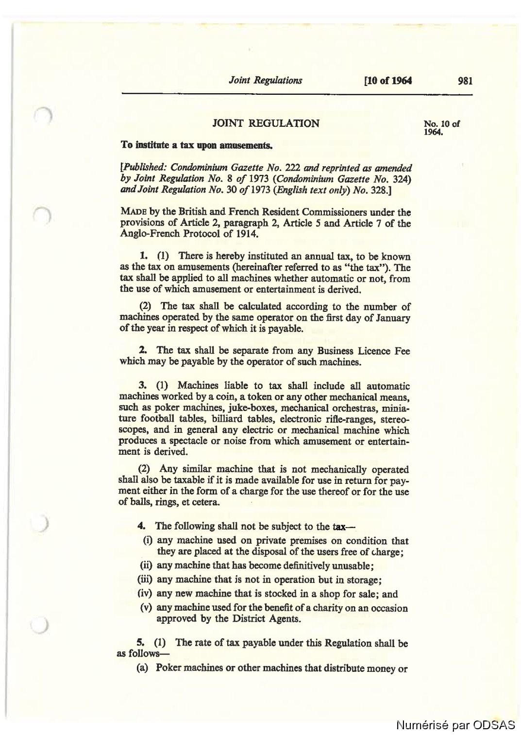 Quote this document Commissaires, Résidents 1973 [accessed: 2026/2/14]. "Règlementation Conjointe des Nouvelles-Hébrides, Tome 2" (Object Id: 198080). In Règlementation Conjointe des Nouvelles-Hébrides, Tome 2. ODSAS: https://www.odsas.net/object/198080.