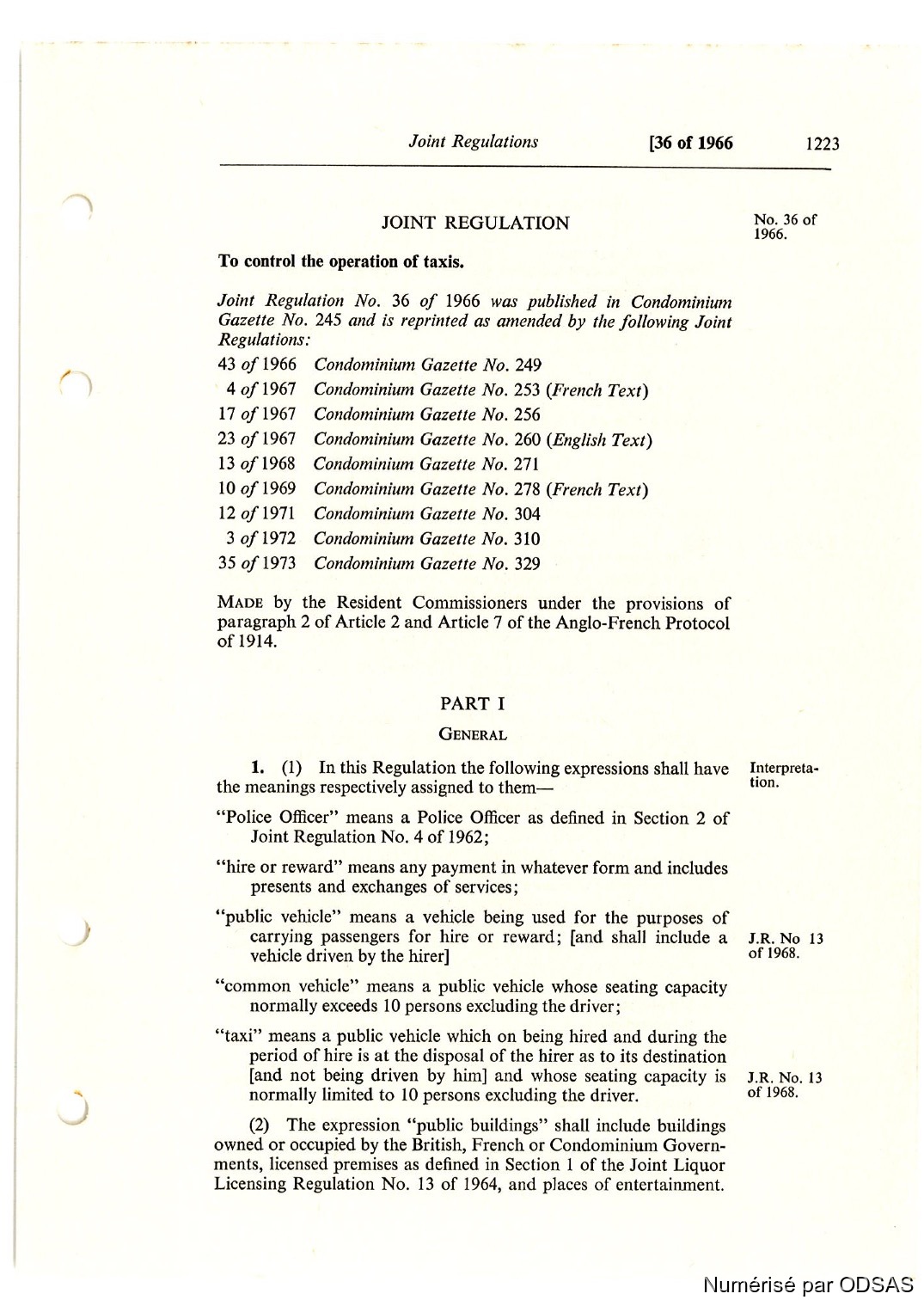 Quote this document Commissaires, Résidents 1973 [accessed: 2026/2/14]. "Règlementation Conjointe des Nouvelles-Hébrides, Tome 2" (Object Id: 198322). In Règlementation Conjointe des Nouvelles-Hébrides, Tome 2. ODSAS: https://www.odsas.net/object/198322.