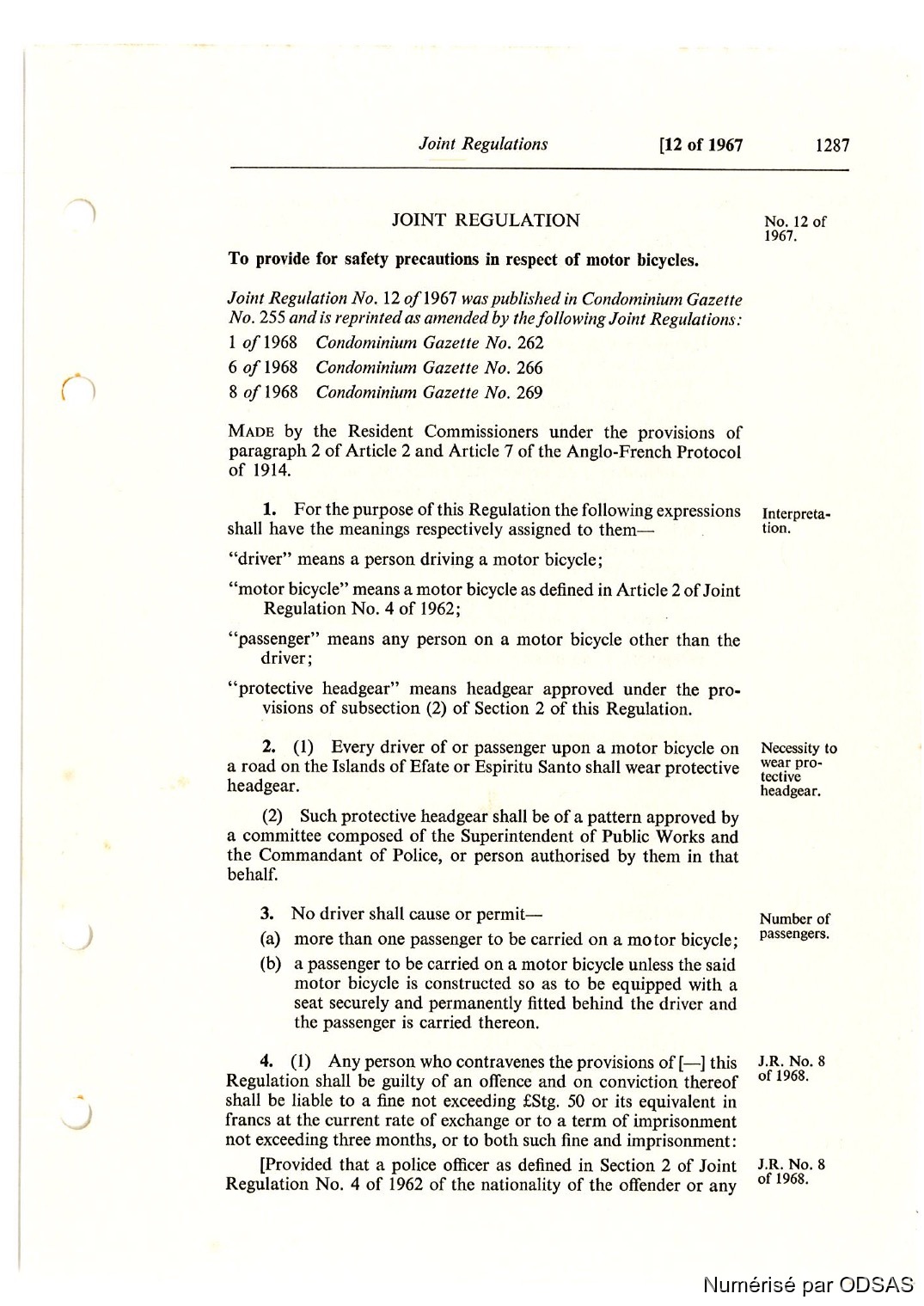 Règlementation Conjointe des Nouvelles-Hébrides...