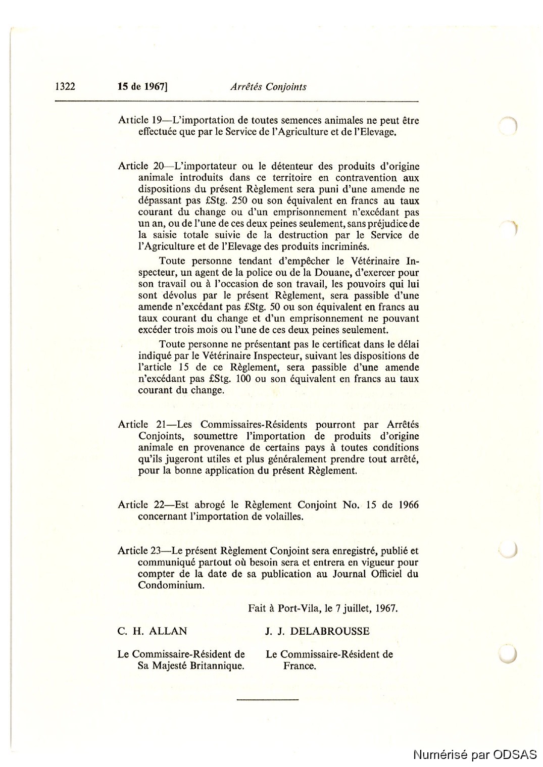 Règlementation Conjointe des Nouvelles-Hébrides...
