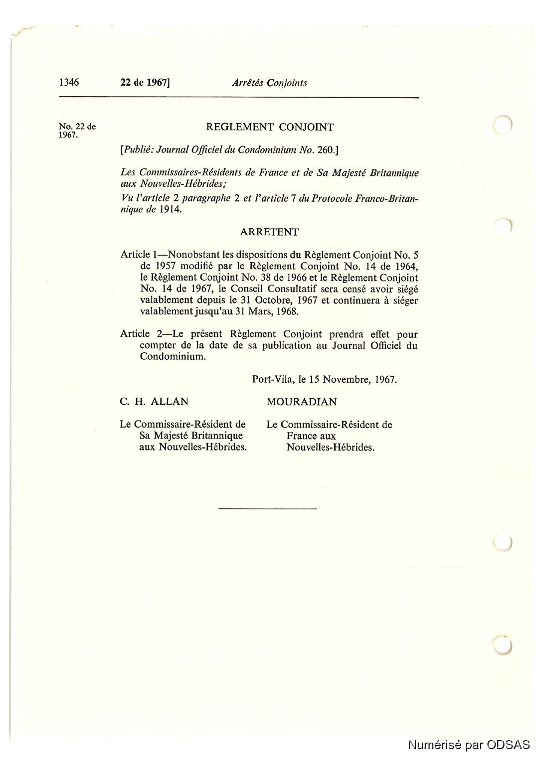 Quote this document Commissaires, Résidents 1973 [accessed: 2026/2/14]. "Règlementation Conjointe des Nouvelles-Hébrides, Tome 2" (Object Id: 198445). In Règlementation Conjointe des Nouvelles-Hébrides, Tome 2. ODSAS: https://www.odsas.net/object/198445.