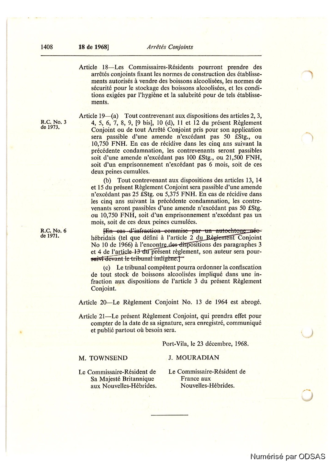 Règlementation Conjointe des Nouvelles-Hébrides...