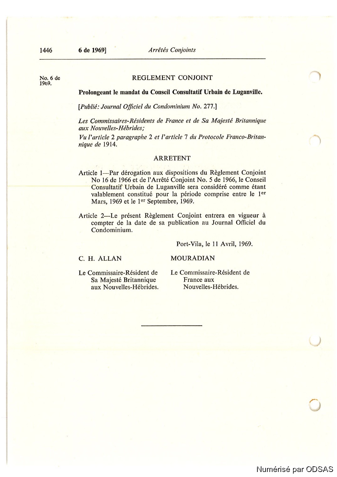 Règlementation Conjointe des Nouvelles-Hébrides...